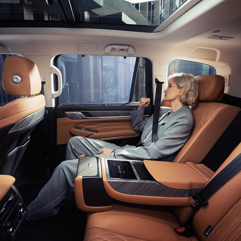 Передние и задние массажные сиденья представительского уровня из кожи Nappa, с функцией памяти, обогрева, вентиляции позволяют клиентам наслаждаться отдыхом и комфортом во время всего путешествия.